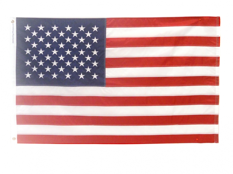 This flag features a beautiful raised Embroidered star field with the strips sewn in. The brass grommets are of high quality.