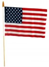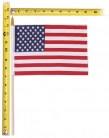 6"x9" Polyester Hand Held American Flag on a 10" wooden stick with a gold decorative top. Wholesale American flags at below wholesale prices. We are the manufacture.